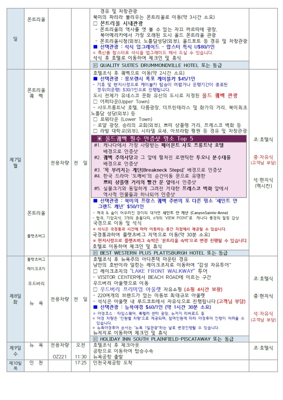 미동부+캐나다 8박10일(화)