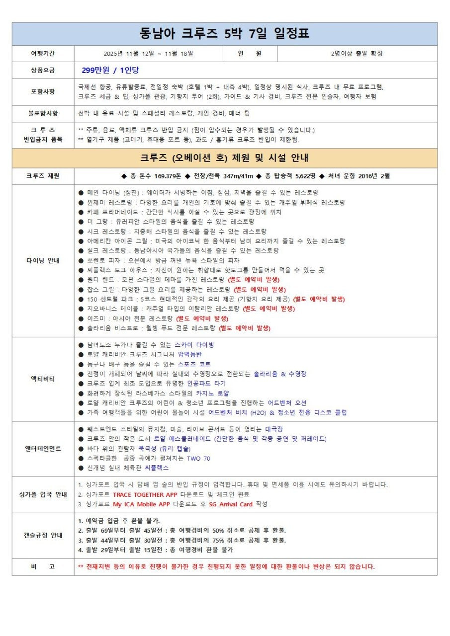 ⚓ 로얄캐리비안 동남아 5박7일 크루즈 여행