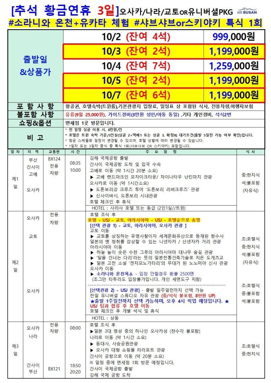 🚨 오사카 추석 황금연휴 특가 잔여석 오픈!